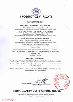德傲微動(dòng)開(kāi)關(guān)CQC CB CE證書(shū)正式下發(fā)