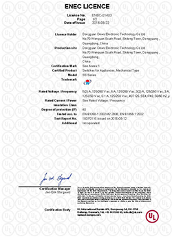 一般型微動(dòng)開(kāi)關(guān)ENEC證書(shū)