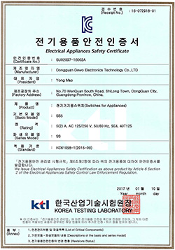 基本型微動(dòng)開(kāi)關(guān)KC證書(shū)