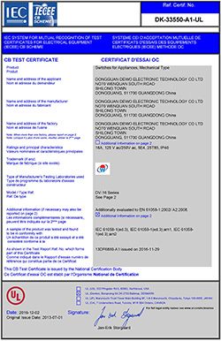 一般型微動(dòng)開(kāi)關(guān)CB證書(shū)